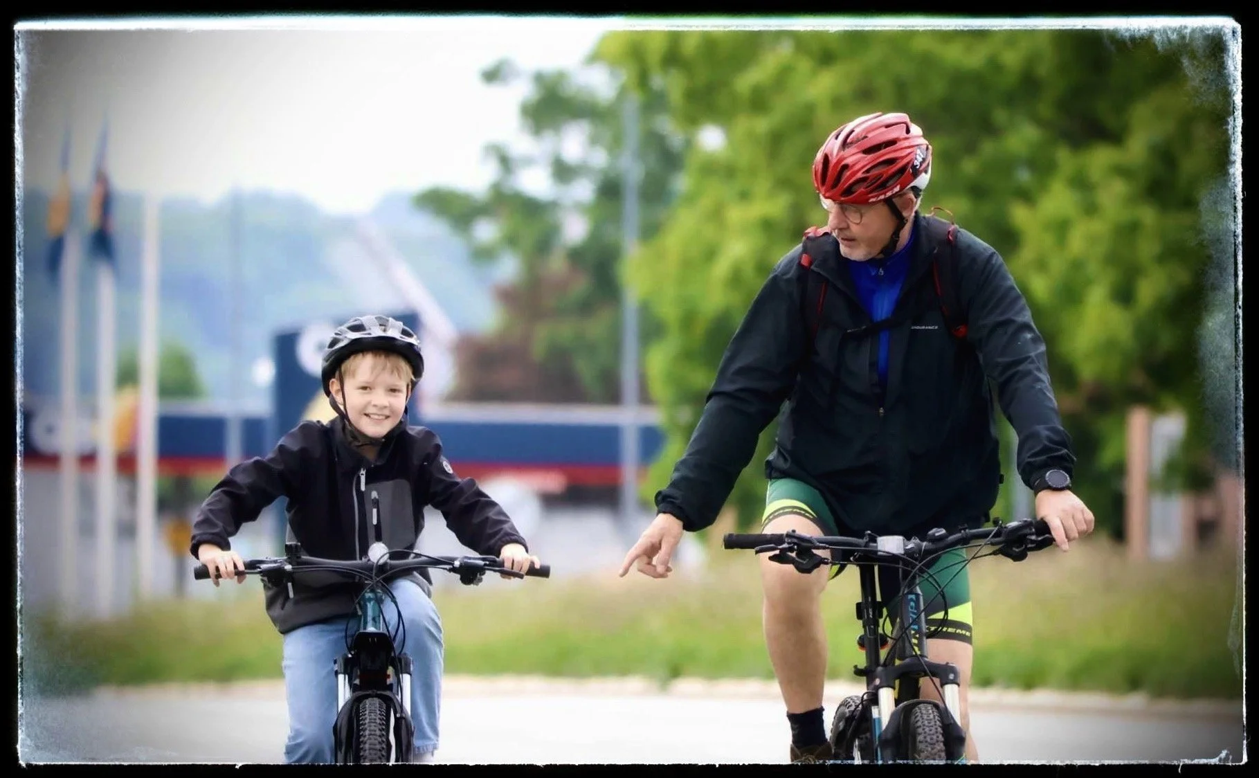 Juni 2025. Felix på ny MTB. Vi er på vej på single track i Søndermarks skoven.